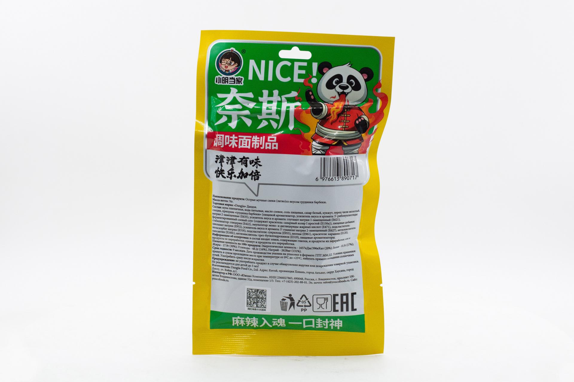 Острые мучные снеки Дандзя (латяо) со вкусом грудинки барбекю (Китай) 76г42,91 руб. за штуку (в упак. 10 шт.) |